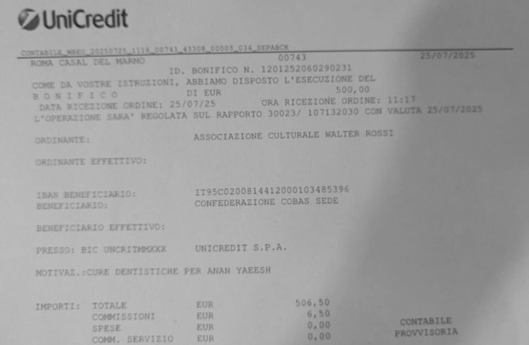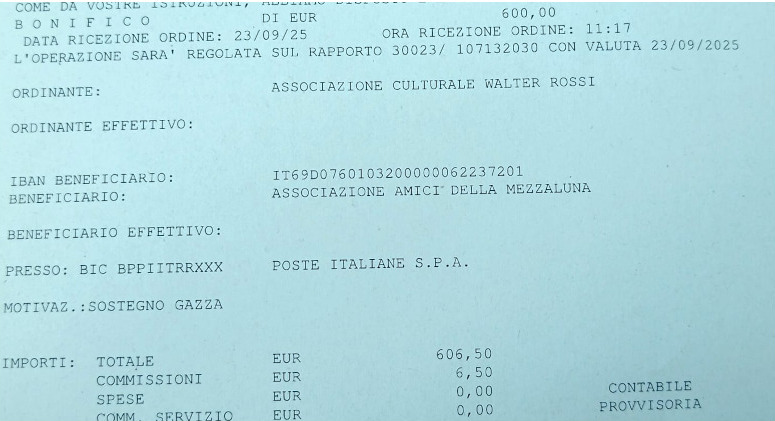 Walter Rossi ha aderito alla campagna SOS Gaza per la raccolta fondi a