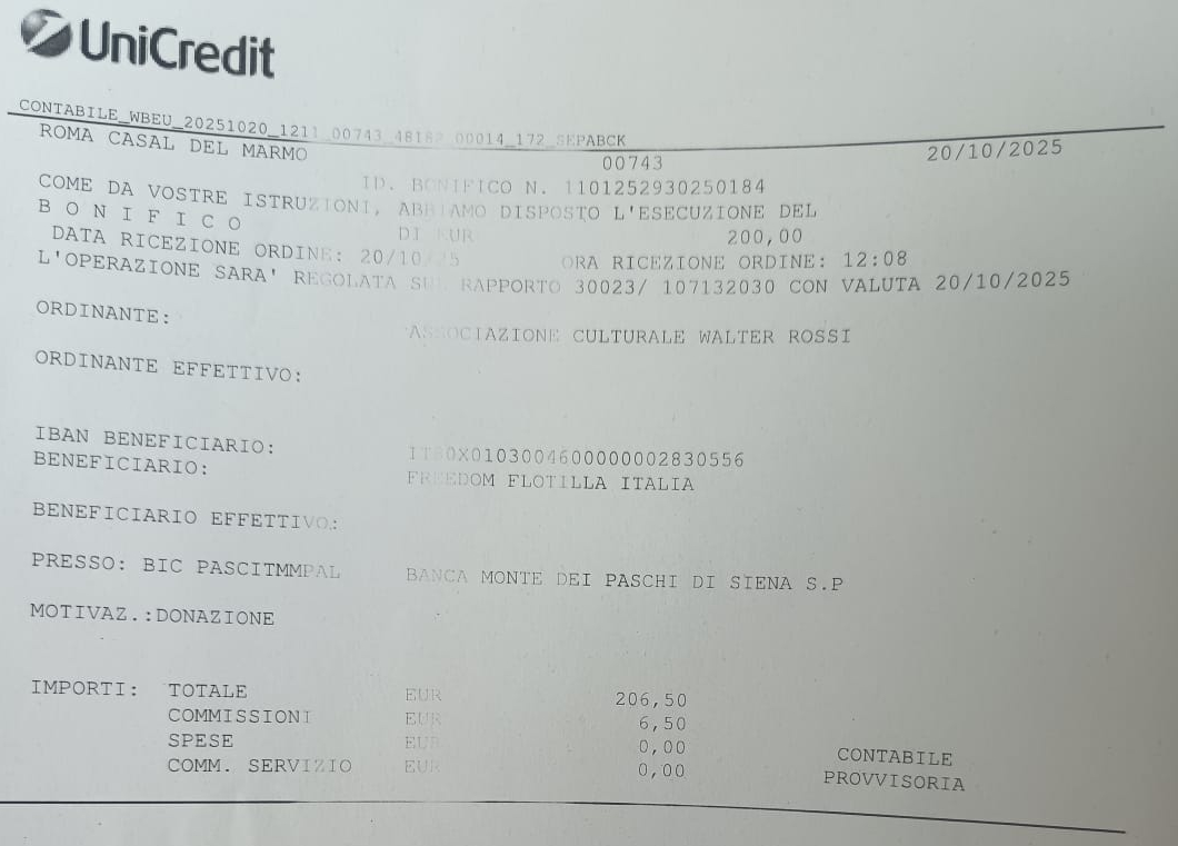 Contributo di 200 euro alla Freedom Flotilla Italia
